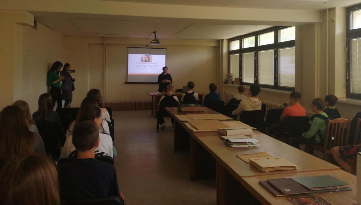 Nuoširdžiai dėkojame Barboros mamai bei jos kolegoms už malonų priėmimą. Mokinių žinios apie archyvo darbuotojo veiklos pobūdį po šio apsilankymo pasipildė ir pakeitė jų įsivaizdavimą apie darbą archyve.