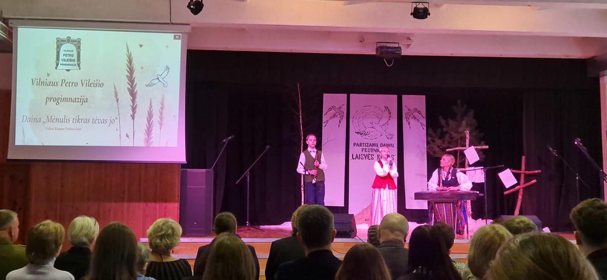 Vilniaus Petro Vileišio progimnazijai festivalyje atstovavo Ališauskų šeima: Akvilė (5mt kl.) dainavo, Lukas (5m1 kl.) grojo birbyne, mokinių Aistė Bružaitė skambino kanklėmis ir kūrė ypatingą muzikinę atmosferą. Mokinius lydėjo muzikos mokytoja Ramunė Pūdžiuvelienė ir istorijos mokytoja Laima Linkuvienė. Jos kartu su vaikais dalijosi bendryste, išgyveno prasmingą muzikos ir istorijos vienybę ir skatino mokinius pažinti laisvės kovų istoriją per meną bei dainą. Festivalio organizatoriai progimnazijai įteikė padėką už dalyvavimą ir Lietuvos istorijos puoselėjimą muzika.
