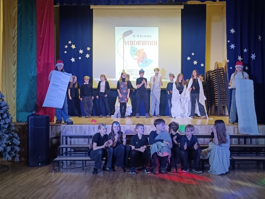 Gruodžio 19 d. savo pasirodymus pristatė 1–4 klasių mokiniai, o gruodžio 23 d. scenoje pasirodė 5–8 klasių mokiniai.