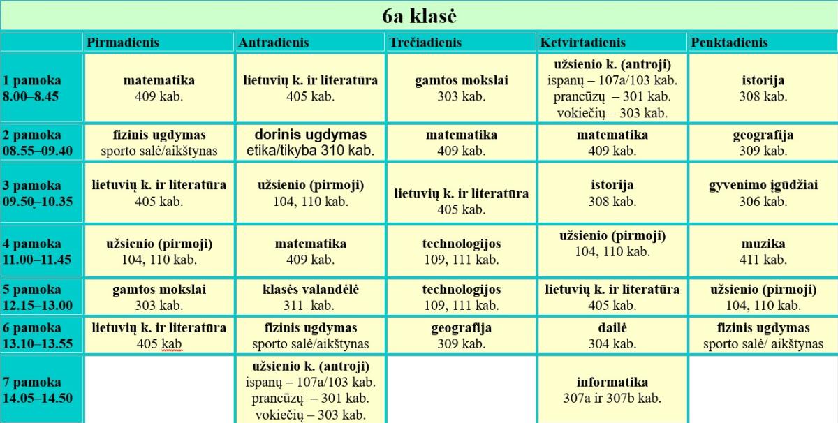 Tvarkaraštį galite pamatyti el. dienyne: Svarbi informacija -> Mokyklos failai
