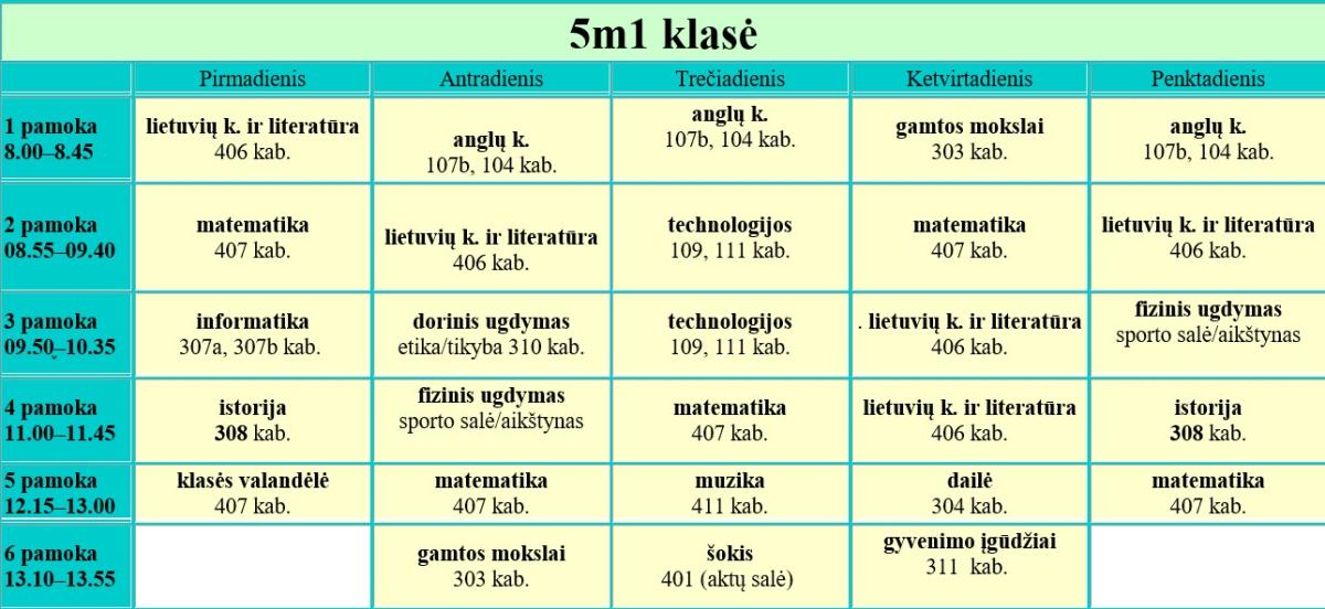 Tvarkaraštį galite pamatyti el. dienyne: Svarbi informacija -> Mokyklos failai